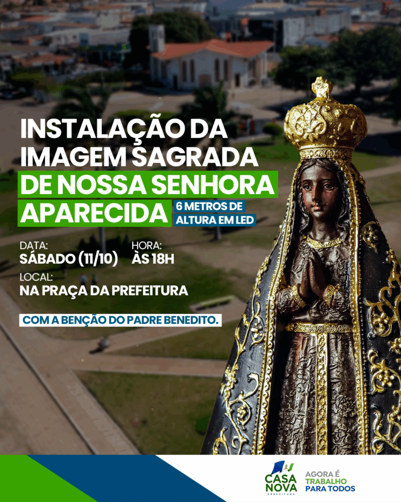 A fé e a devoção do povo de Casa Nova ganham um novo símbolo de amor e esperança com a instalação da imagem Sagrada de Nossa Senhora Aparecida, padroeira do Brasil. Com seis metros de altura e iluminação em LED, a escultura será instalada na Praça da Prefeitura, trazendo ainda mais beleza e encanto ao […]