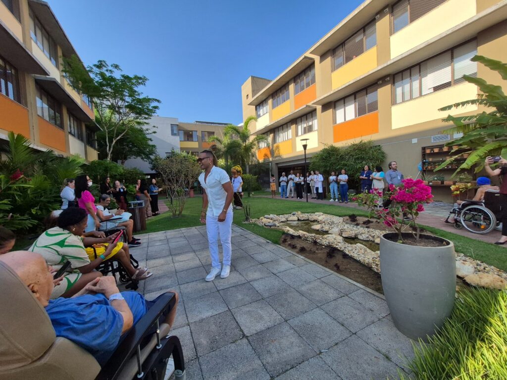 Vocalista da Timbalada animou a tarde de pacientes em cuidados paliativos e reabilitação com o projeto “Música que cura”