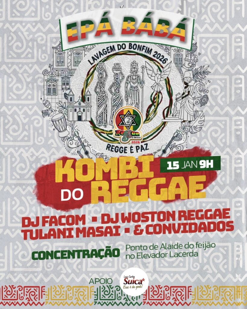 Iniciativa antecede o desfile do bloco na quinta-feira de Carnaval com a banda Adão Negro A Kombi do Reggae participa da Lavagem do Bonfim 2026 como ação do Reggae o Bloco, que desfila na quinta-feira de Carnaval com a banda Adão Negro. O cortejo acontece no dia 15 de janeiro, com concentração às 9h, no […]