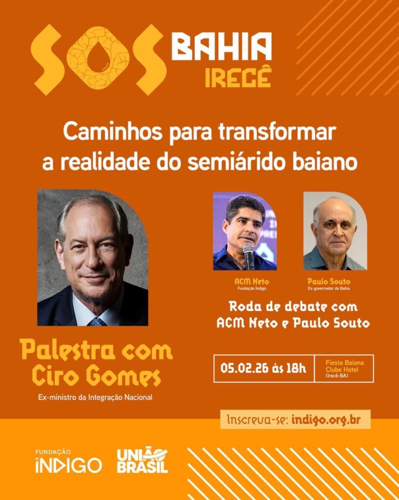 Evento em Irecê terá a presença de ACM Neto, Ciro Gomes e Paulo Souto Com o tema “Caminhos para Transformar a Realidade do Semiárido Baiano”, a Fundação Índigo e o União Brasil realizam, nesta quinta-feira (5), em Irecê (BA), a 3ª edição do Fórum S.O.S Bahia. Ex-governador do Ceará e ex-ministro da Integração Nacional, Ciro […]