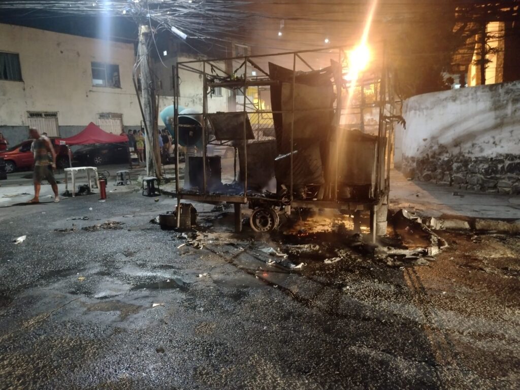 No cenário onde antes reinava a alegria, a tristeza. O incêndio ocorrido na noite deste domingo (11) que atingiu e destruiu o Food Truck “Vou Ali” cobriu de luto a Olaria. As imagens das chamas “devorando” o trailler deixou consternado os freqüentadores do espaço, que logo foram às redes sociais a fim de levantar recursos para ajudar o proprietário, Edilson dos Santos Junior, a reerguer o seu negócio.