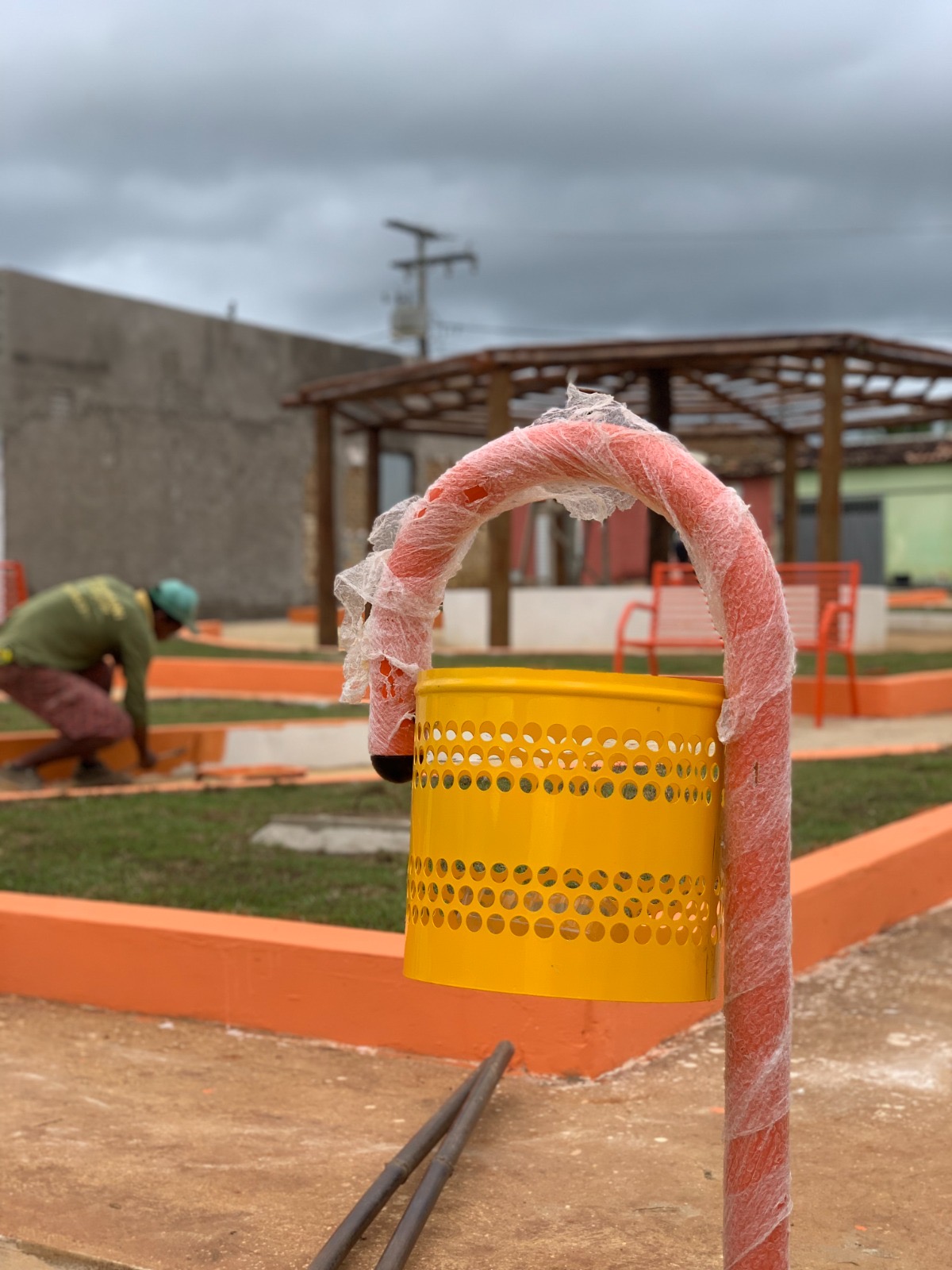Obras de construção da Praça da Liberdade avançam com instalação de pergolados, gramas e bancos em Utinga; confira aqui