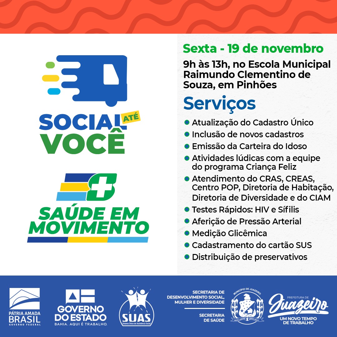 ‘Social até Você’: Prefeitura de Juazeiro vai levar serviços de cidadania e saúde para Pinhões nesta sexta-feira em Juazeiro