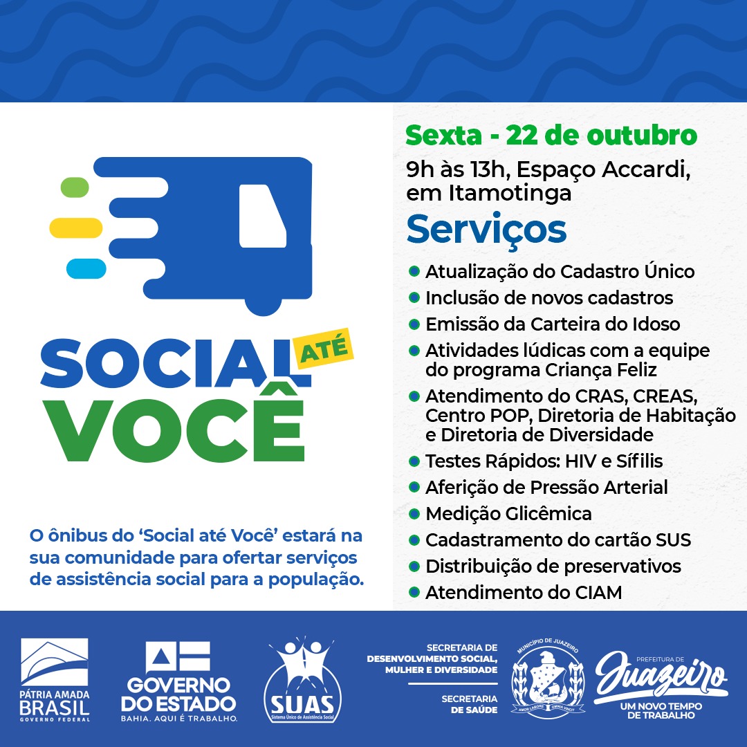 Social até Você’: Prefeitura de Juazeiro vai oferecer serviços de cidadania e de saúde no distrito de Itamotinga nesta sexta-feira