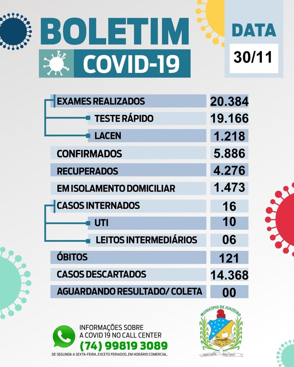 Boletim da SESAU desta segunda-feira (30) registra 23 casos confirmados para COVID-19 e mais 14 curas clínicas em Juazeiro
