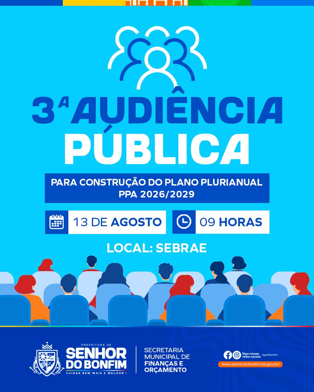 Senhor do Bonfim: Prefeitura realiza 3ª Audiência Pública para construção do Plano Plurianual 2026–2029 nesta quarta (13)