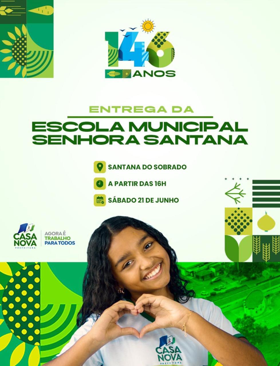 146 anos: Prefeitura de Casa Nova entrega Escola Municipal Senhora Santana em Santana do Sobrado neste sábado (21)
