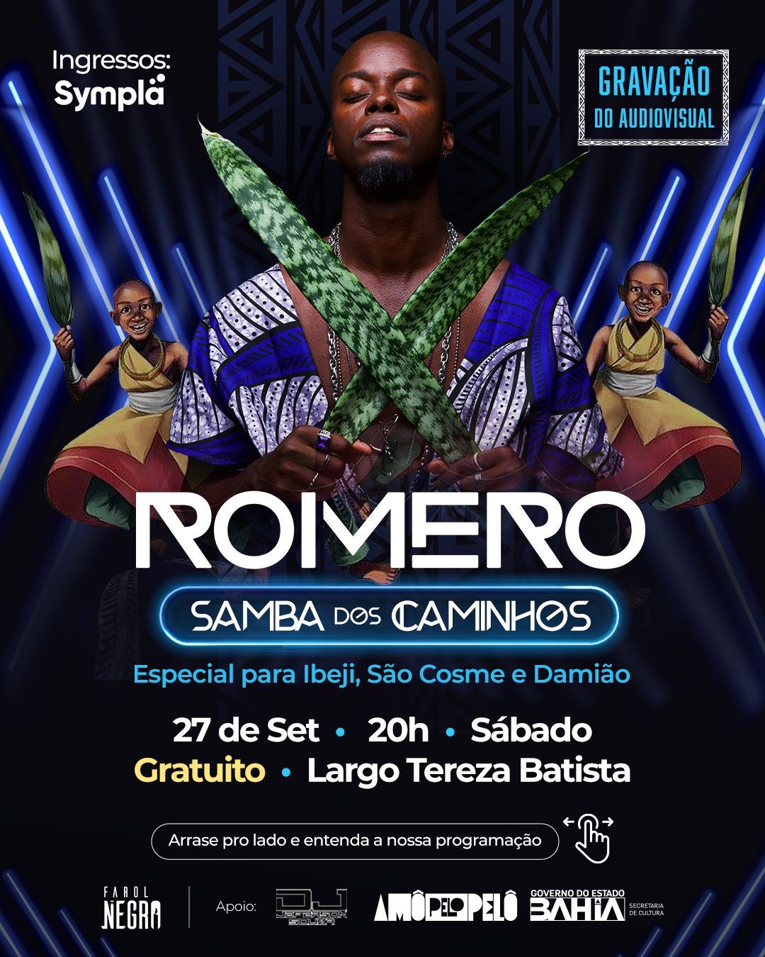 No dia de São Cosme e Damião, Pelourinho recebe show gratuito de Romero Mateus com Samba dos Caminhos