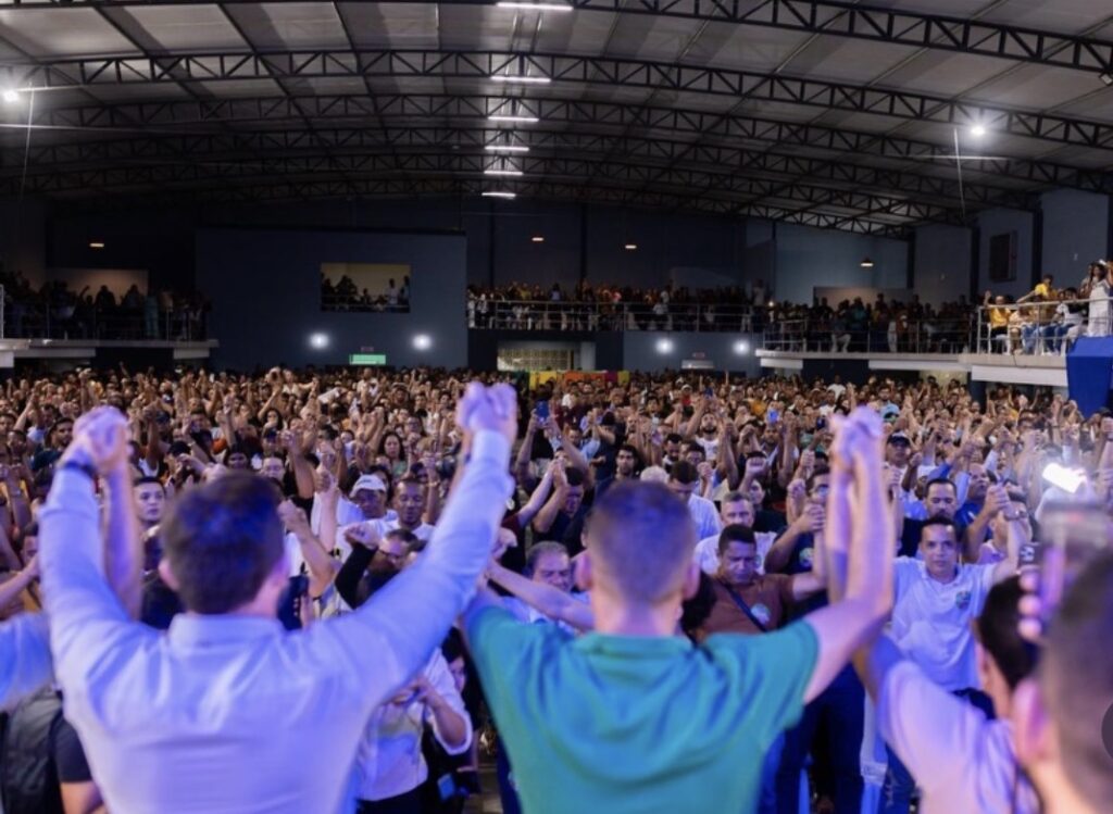 Um dos momentos mais marcantes do encontro ocorreu quando o senador Ângelo Coronel percorreu o corredor central da Arena Hall ao lado de Gilleno, de mãos erguidas, enquanto entoava um louvor. O gesto foi acompanhado por aplausos e manifestações de apoio do público, em um momento de forte simbolismo político e emocional.