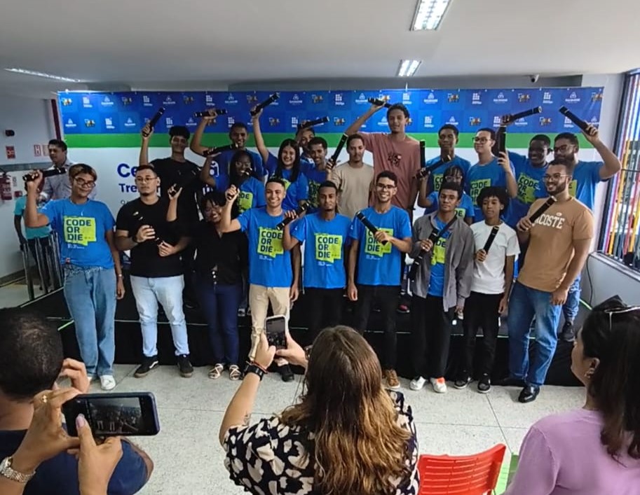 A Prefeitura de Salvador realizou nesta terça-feira (10) a certificação de 60 alunos que concluíram o programa Treinar para Empregar Tech. O evento ocorreu na Escola Radialista Raimundo Varela, no Rio Sena, e marcou a conclusão de uma jornada intensiva de formação voltada a jovens moradores da região do Mané Dendê, no Subúrbio.
