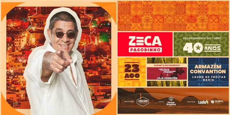 Está aberta a contagem regressiva para o retorno de Zeca Pagodinho à Bahia, que acontece no próximo dia 23 de agosto com a turnê comemorativa de seus 40 anos de carreira. O espetáculo será realizado no Armazém Convention, espaço localizado em Lauro de Freitas, na região metropolitana de Salvador.